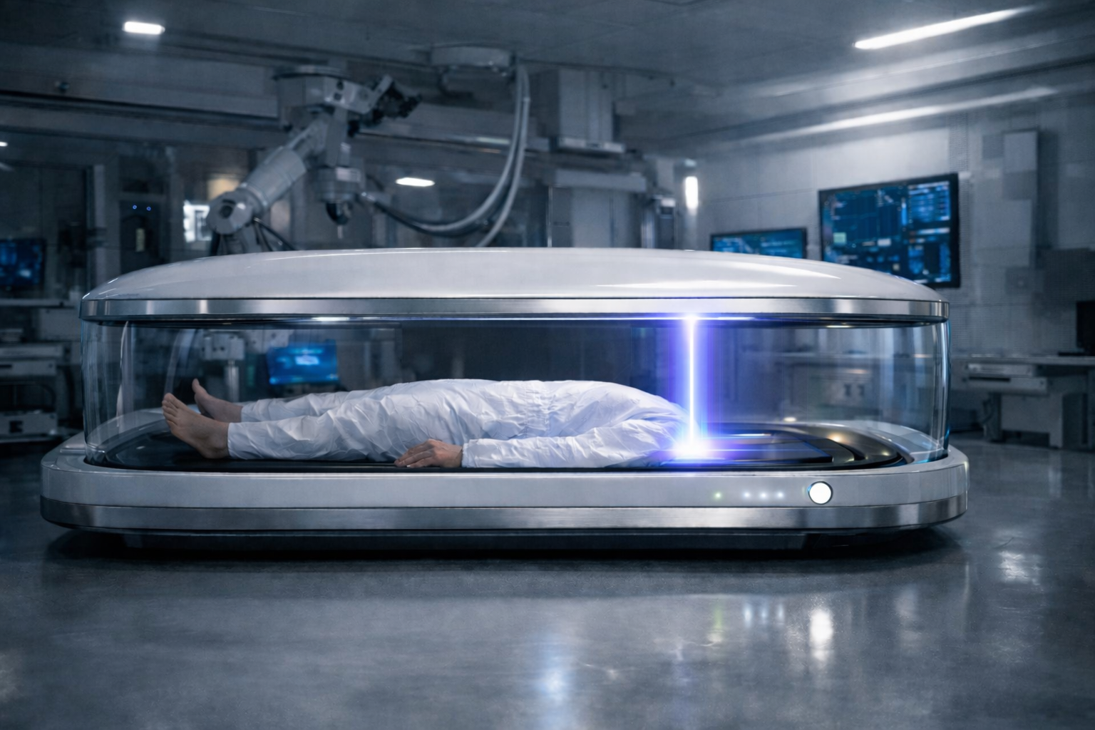 This is time-critical. Gravity matters. Orientation reduces pressure gradients during removal. The human body is small where it matters most: the brain. The subject lies supine while the grid passes from head to toe, preserving the exact synapse pattern present at the moment of death. Neural activity does not stop instantly. Synapses continue to fire for minutes after clinical brain death. The scan waits briefly, allowing activity to collapse into a stable pattern before capture begins. 5
